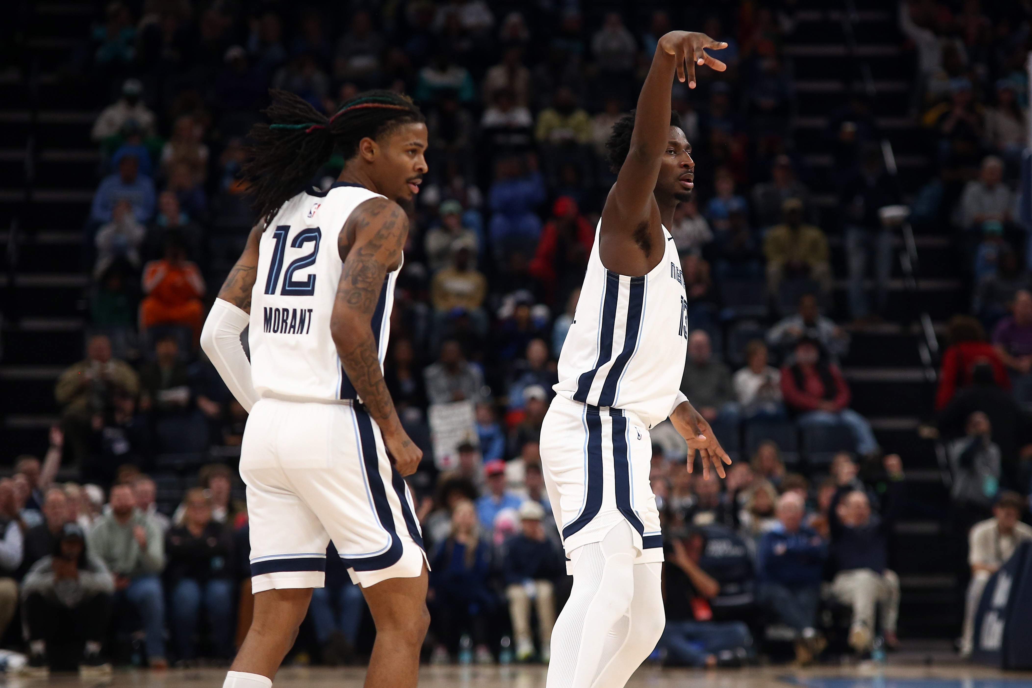 伤愈回归:后卫贾-莫兰特(左髋挫伤)、杰克逊(草地趾手术)、中锋扎克-埃迪(左脚踝手术)、前锋布兰登-克拉克(右膝后交叉韧带扭伤)、前锋杰伦-韦尔斯(脑震荡)